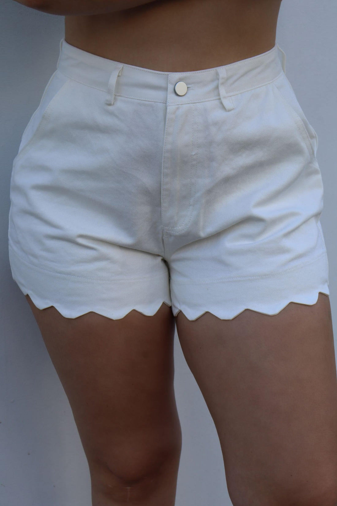 Fun and different white jean shorts. Model is wearing size medium. True to size
