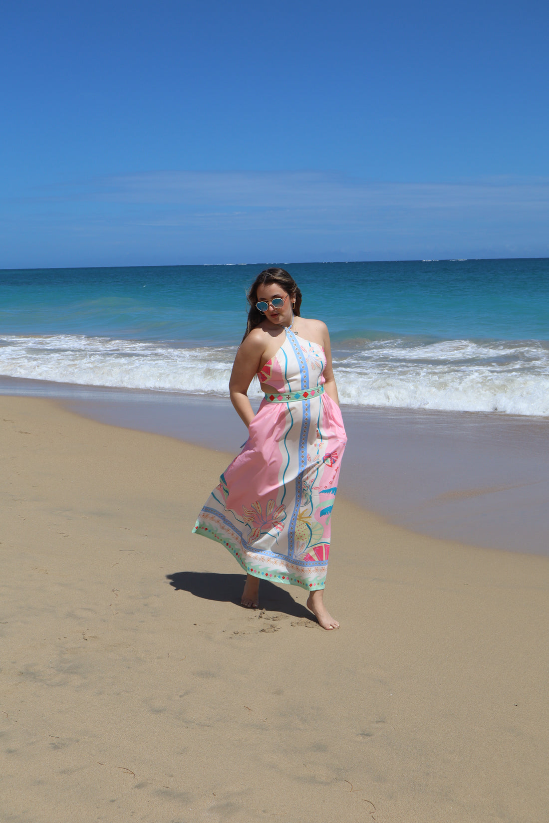 Halter comfortable top. Perfect for a tropical outing. Model is wearing size small. Runs true...