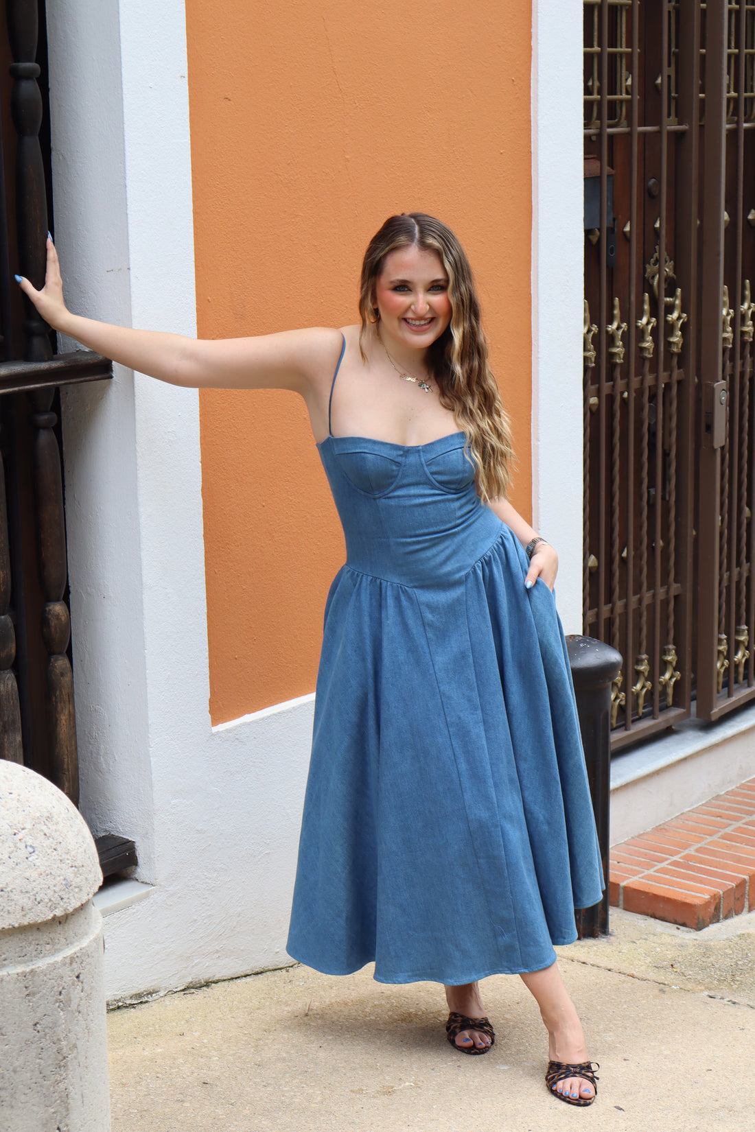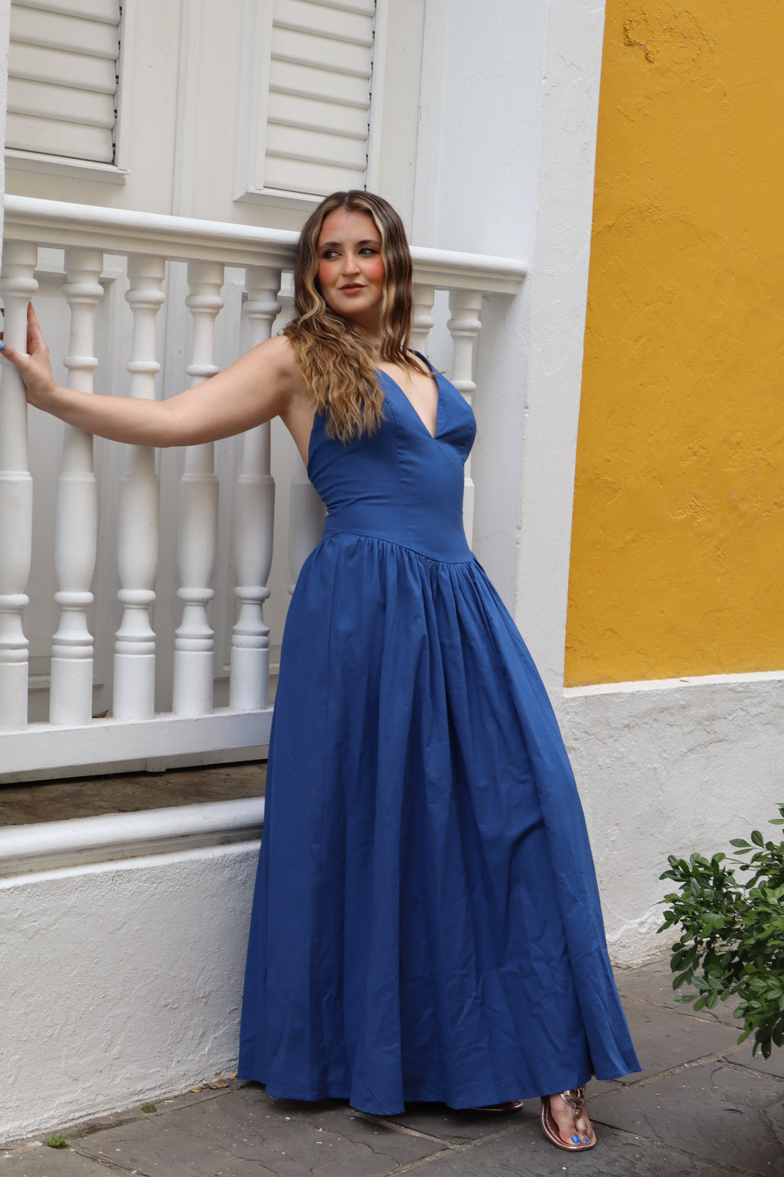 This beautiful romantic solid blue dress is perfect for a date or a stroll through...