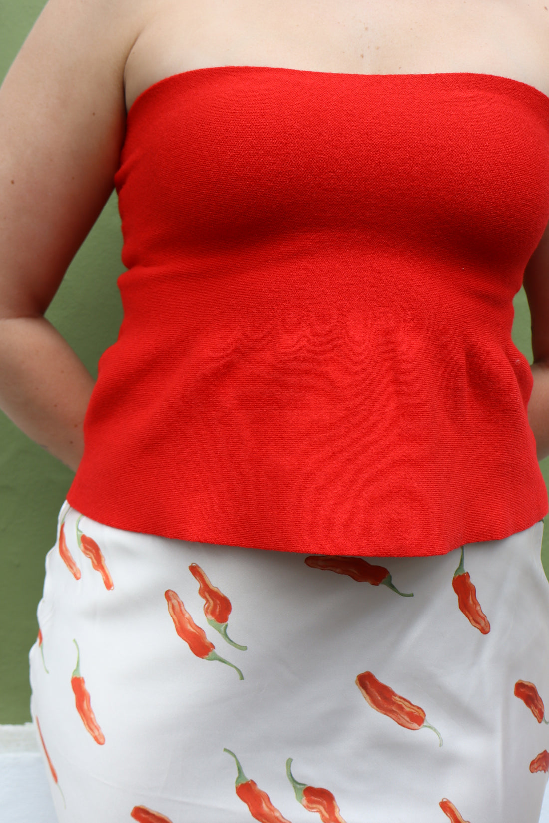 Strapless Knit Peplum Top. Perfect for a pop of color. The color red is having...