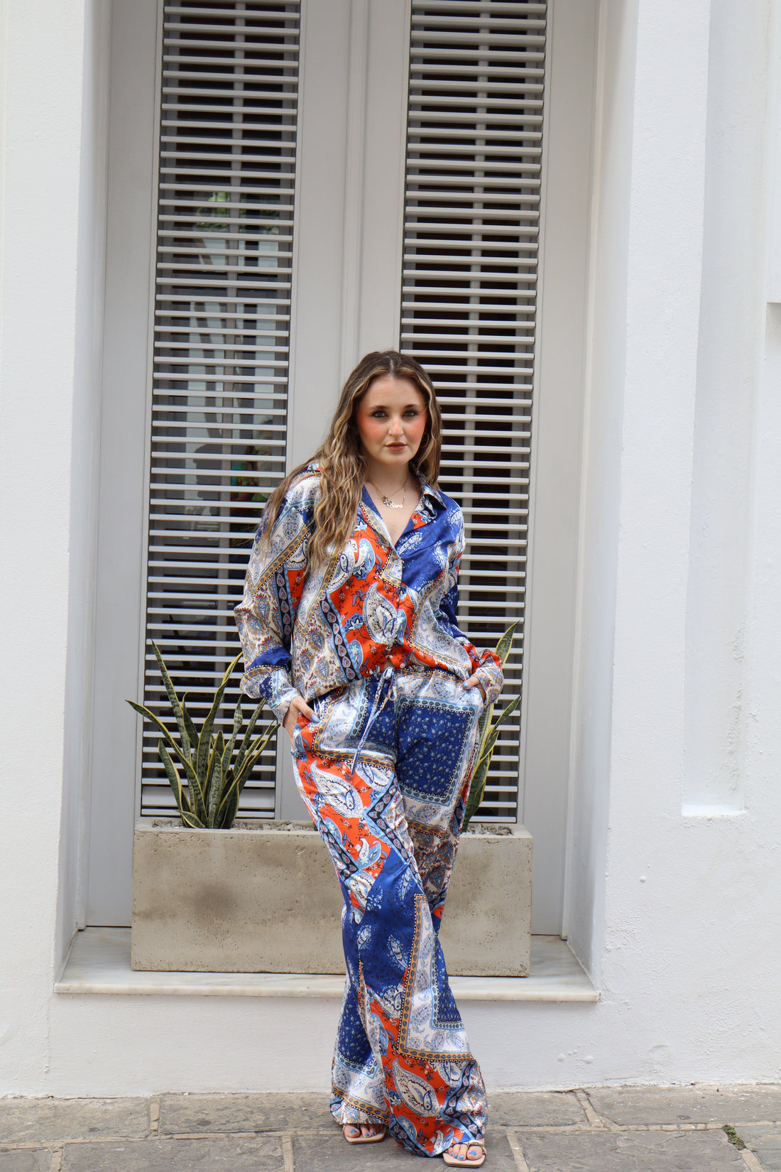 Comfortable long sleeve and pants satin set. Styled up with heals but perfect if styled...