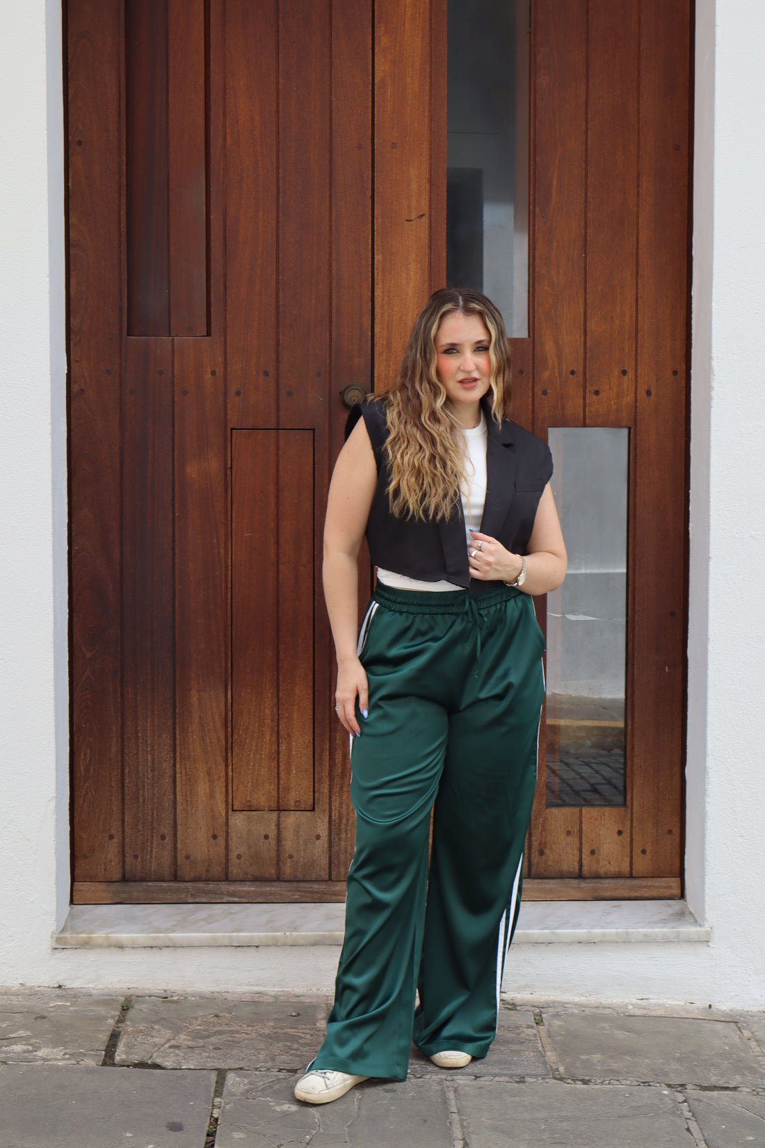 Satin pants perfect for a casual night out styled with sneakers. Runs true to size,...