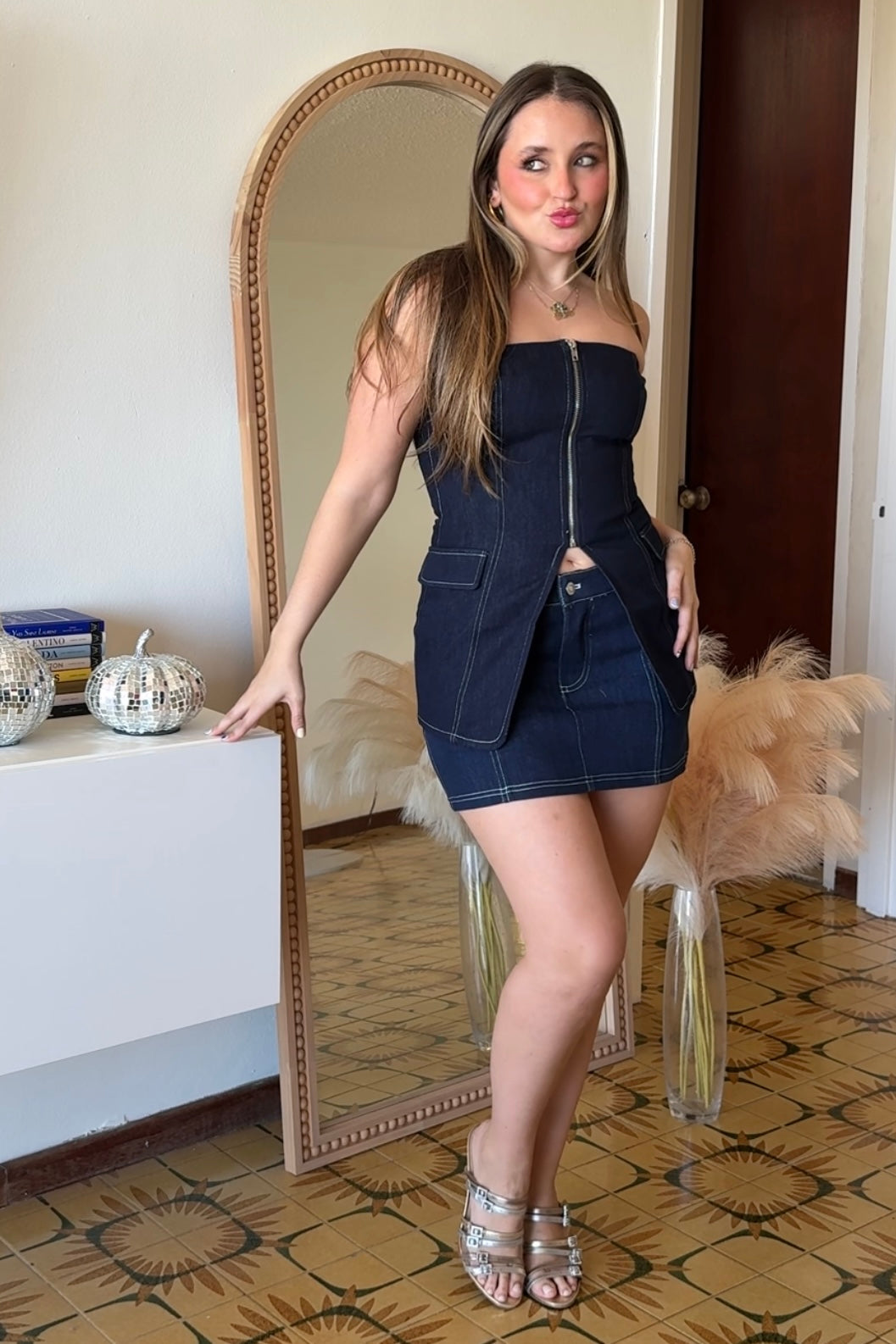 Denim Zipper Top